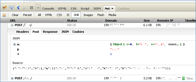 Carefully scanning the JavaScript files which loads at the client side at the time of target page loads can give some clues about the possible vulnerable functions being used. One tool which is great and very handy in doing such analysis is FireBug. We can identify all the Ajax calls under XHR tab (Fig):