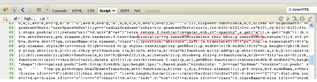 Scanning the JavaScript files is also very easy with this tool. It will list down all the dependent .js files, which in turn can be reviewed for presence of one or more above mentioned functions. Clicking on Script tab provides all the JavaScript files loaded:
