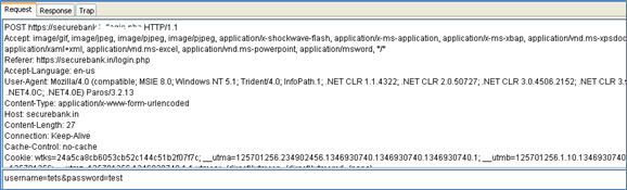 Now we launch our application and the proxy captures all the requests/responses to and from the server [Fig-7]. Now while the proxy can intercept the request/responses, the application can be tested as per normal web application penetration techniques to uncover issues like, authentication, authorization, injection flaws, etc…