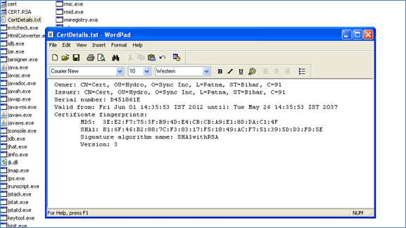 keytool -printcert -file MyCert.cer > CertDetails.txt