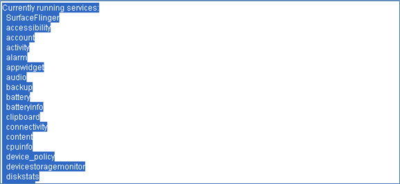 'Currently running services' are among the other critical information dumped over the screen [Fig-17]. You may need to see the entire dump. For readability, they should be dumped into a text file.