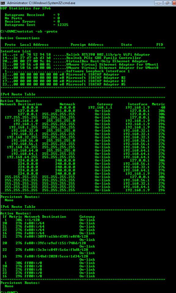 cmd.exe - Leveraging the command line for windows: malware analysis and forensics. Part I Abstract : The command prompt for windows is a dark horse of sorts. Long time windows users appreciate it to a certain extent, though linux converts and other OS geeks tend to disregard it, owing to some really great features available on their shells. Windows has always supported the GUI paradigm and has long moved on from its early DOS days when the command line actually mattered. In modern workspaces full of interactive user interfaces and ever improving graphics hardware and software, where does cmd.exe fit in? Most users don't really bother with it as even basic networking seems to be over their heads. However, as security professionals it's just fine if we get more comfortable with this undervalued gem. In spite of WMIC and Powershell which will be delved upon as well, you might agree that the convenience of these power tools might not be evident on every system, considering that XP is still the most used OS. Here I aim to describe some of the useful commands that I use to get some better results during my own analysis sessions. I always follow the "streamlining your toolkit" agenda, wherein I make the maximum use with minimum effort required. The analogy for tech musicians (if you are one) would be paint by numbers music composition using building blocks as arrangement atoms. That surely beats the effort required to compose a ninth every now and then, I suppose. Further for us malware reversers are the lines between discriminating analysis and forensics. They are futile as the complexity is only going up with each new malware and exploit. Taking a memory dump of an infected system to get the malware bare and naked is the first step. Then you carve out the sections from the dump and thereafter proceed to static disassembly analysis to get more in depth data to do the network forensics on the debugged executable. How do you really differentiate which is which in terms of the workflow techniques? The more you know the better (more like all roads lead to Rome). Let's get to it, it will be concise and fast. Discovering the commands. Realize that most of these commands are complete programs that are invoked from the terminal using their executable names (ipconfig/netstat). Of course quite a few are inbuilt (for/cd). To start cmd.exe type cmd at the run command box in XP/Windows 7 from the start menu. It helps to start the command prompt (hereafter referred to as cmd) in admin mode for better access to system resources (like firewall access) or the cmd will give 'access denied' error messages without the cool music and graphics in the movies. You will see the default banner message on cmd startup as well as the familiar command prompt defaulting on the root drive as configured in your OS installation (normally C:[Windows Directory]). To get a summary of the commands supported in cmd type help. You will get a listing as shown below. It certainly helps to paginate the list but default buffer size allows you to view it by scrolling the display up and down. To paginate use the more command after preceding with a pipe symbol on your keyboard | (with a single space before and after). Hereafter use /? After a command string get the list of switches and the command format if needed. Type cd .. repeatedly to get to the root directory. Here two levels are crossed back to get to C:. In case more levels are required in one shot, the use of .. repeatedly in one line as per the level of ascendance required. To illustrate: If the current directory is , C:Test1Test2> To get to C: using this method, you would type C:Test1Test2>cd .... Pagination.. C:help | more To do a headcount of the number of commands supported implicitly by cmd: C:help | find /c /v "" Notice the piping to the find command as well as passing the switches /c (count) and /v (inverse/avoid) and then "" as a dummy string. As it turns out, carriage return and line feeds (CR+LF) is not recognised by find. Another quirk is that a specific search string has to be limited to the ones not containing a r or n (environment newline) in text metadata. In order to circumvent this deficit and get the line count the "" string pair works fine. We will also use the findstr command to use regex like expressions to search strings or use wildcards (* is the most commonly used wildcard – "5*", will search and find all strings beginning with 5). It essentially does a line count and accommodating for the line wrapping by the default count of 100 on Windows 7. Still manageable? These 100 or so commands provide the maximum leverage to get the most information from your system. To clear the screen as you will need to at some point type cls. There are some basics that need to be addressed regarding the standard output, input and error streams. These are default streams (bytes of data) supported by the cmd program and can be programmatically accessed as well using other utilities with cmd. Standard output provides the string display for the command(program) results on successful execution. Any error or software exception is put through to the error stream. All user inputs are handled in the input stream. Piping is a common use in terminals/shells like cmd and the pipe symbol | enables you to input or pipe the output of one command to the next one in linear sequence. Using Boolean logic like && (AND) and II (OR) during piping enables us to add a logical component to our rote list and certainly adds value to more complex command sequences. The thing to remember is that the command after the logical AND would be executed only if the preceding one has succeeded, whereas the OR would run only if the preceding one failed. We will see some instances this later in this article. C:> start <application.exe> && notepad.exe C:data.dat To append to or create a new file to store the command outputs, it requires you to use the >> or > signs respectively. For example, to store the output o