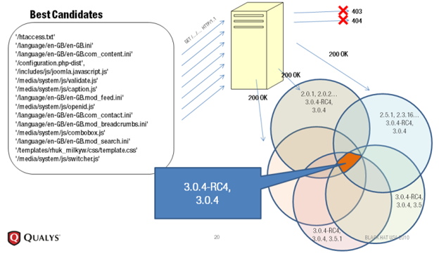 Actually it scans for static files, version no, config file. A best candidate for finger printing is by checking the checksum of the file like with the hashing method. Some others are below: