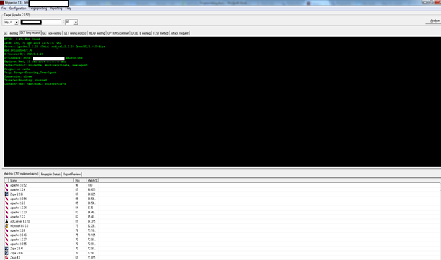 ./httprint -s signatures.txt -o apache1.html -h apache.example.com
