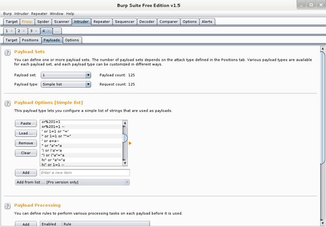 A penetration tester can create his own list of payloads or use an existing one. Exemplary payloads can be found, for example, in Kali Linux (penetration testing distribution [4]) in the /usr/share/wfuzz/wordlist/Injections directory. Let's use SQL.txt from this location to test the parameter id for SQL injection vulnerability.