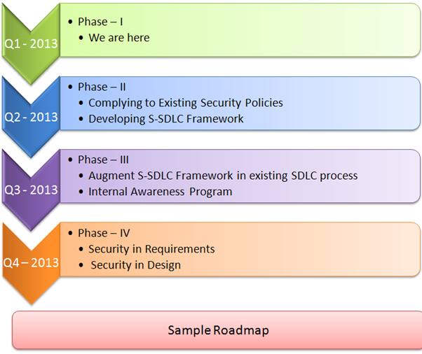 In the previous parts we covered the approach for implementing Secure SDLC (S-SDLC) and Gap Analysis. In this part we are going to cover Road Map Design and Implementation.