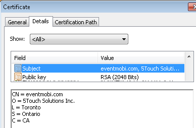 Next, check the "CN" on the certificate (usually in the "Subject" field). In this case, the certificate looks like a "wildcard" certificate because the CN is for the entire domain rather than a specific server. This is often a good sign, because wildcard certificates indicate that a company is large or stable enough to spend the extra money on a site-wide certificate.