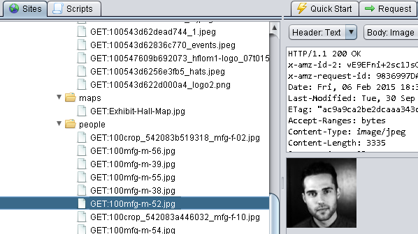 Notice that the full URL of each asset is available in ZAP. To see whether or not an asset is accessible without any access control, copy its URL into an "incognito" browser window in a non-proxy browser. (ZAP provides a right-click "Copy URLs to Clipboard" option for this exact purpose.)