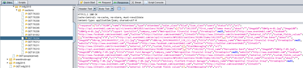To look for this type of information using ZAP, look for large page or Web service requests in your history, then dig into the fields provided. Remember to cut/paste data in JSON prettifiers and other tools if you need help visualizing it.