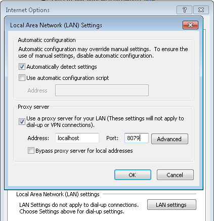 - In the "Local Proxy" section, set the address and port your browser will use (The defaults are an address of "localhost" and a port "8080").