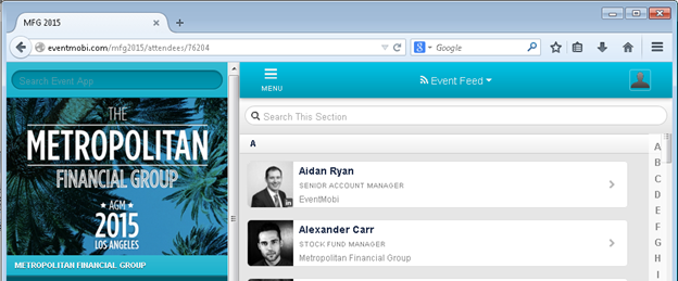 Now that you have OWASP ZAP and your browser set up, let's proceed with some reconnaissance. Our sample target today will be a web services company called EventMobi, which hosts a public demo at http://eventmobi.com/mfg2015/attendees/76204. (Remember, we're being non-invasive, so public resources are best!)