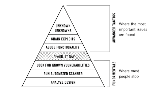 Unfortunately, most security testing calls it quits at this point. Many approaches don’t even hit all of the steps mentioned so far: they rely solely on scans and fail to analyze the design.