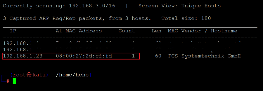 In the above screenshot, it can be seen that we have identified the IP address of all the devices connected to our router. Still, we have hidden the MAC address of my personal connected devices due to security reasons. Our target machine IP address that we will be working on throughout this challenge is 192.168.1.23 (the target machine IP address). We will be using 192.168.1.29 as the attacker's IP address.