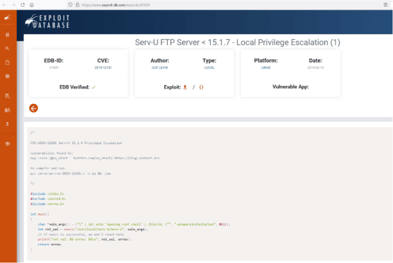 As seen in the above screenshot, the local privilege escalation exploit is written in the C program language. We will download and run the exploit on our target machine in the next step.