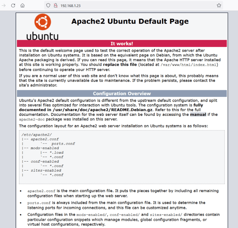 As we have all the open port details, we can explore the open port and services on the target machine. Let us start the enumeration from the HTTP port 80. After opening the IP address in the browser, we found the default apache page, which can be seen in the screenshot given below.