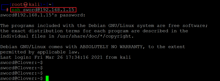 << ssh sword@192.168.1.15 >>