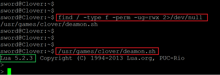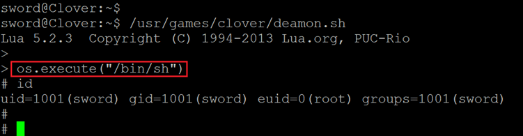 Command used: << os.execute("/bin/sh") >>