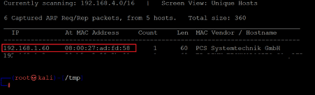 In the highlighted area of the above screenshot, we can see an IP address, our target machine IP address. The target machine IP address is 192.168.1.60, and I will be using 192.168.1.29 as the attacker's IP address.