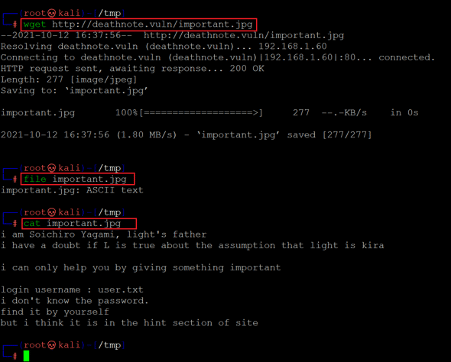 DEATHNOTE: 1 VulnHub CTF walkthrough