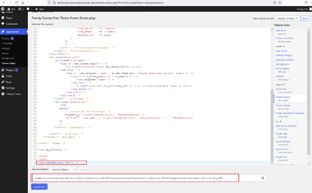 We tried to write the PHP command execution code in the PHP file, but the changes could not be updated as they showed some errors. We have to identify a different way to upload the command execution shell.