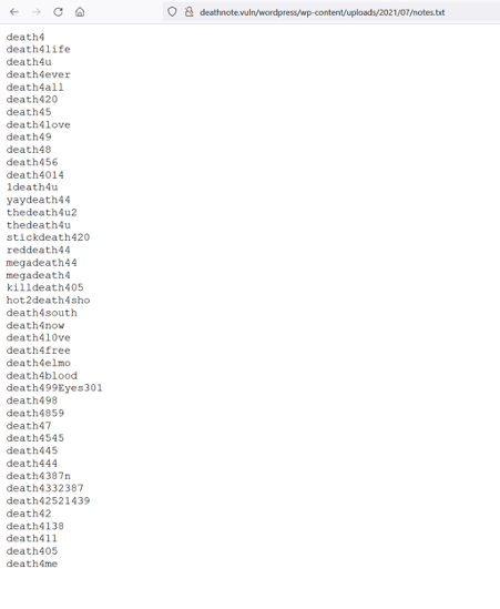 Command used: << wpscan --url http://deathnote.vuln/wordpress/ >>