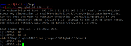 Command used: << ssh -I qiu@192.168.1.21 >>