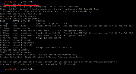 Command used: << nmap -p- -sV 192.168.1.21 >>