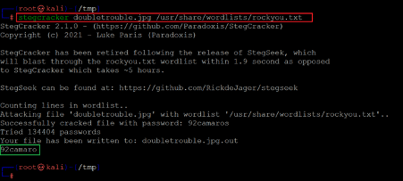 << stegcracker doubletrouble.jpg /usr/share/wordlists/rockyou.txt >>