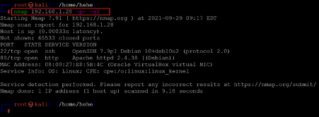 Command used: << nmap 192.168.1.28 -p- -sV >>