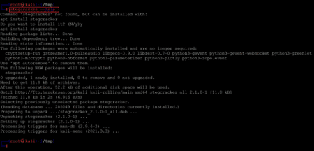 The downloaded file was password-protected, so we decided to use the StegCracker utility to extract the hidden passphrase from the file. The tool does not come pre-installed in Kali Linux. So we need to install it first, which can be seen below.