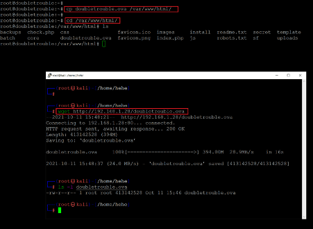 - << cp doubletrouble.ova /var/www/html/ >>