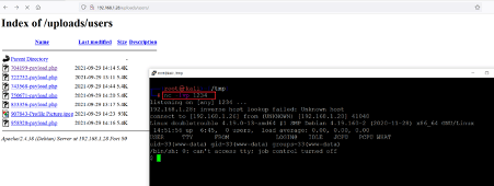 As directory listing was enabled, all the uploaded payloads can be seen in the ‘/uploads/’ directory. However, due to some error, it was not executed by the exploit program when we opened the payload file into the browser that triggered the reverse proxy payload and gave us the reverse connection on our attacker machine terminal, as can be seen below.