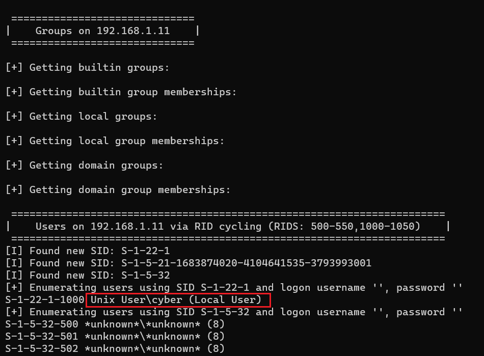 There was a login page available for the 'Usermin' admin panel. 'Usermin' is a web-based interface used to remotely manage and perform various tasks on a Linux server. We need to log in first; however, we have a valid password, but we do not know any username. We decided to enumerate the system for known usernames. There is a default utility known as 'enum4linux' in kali Linux that can be helpful for this task. The command used for the scan and the results can be seen below.
