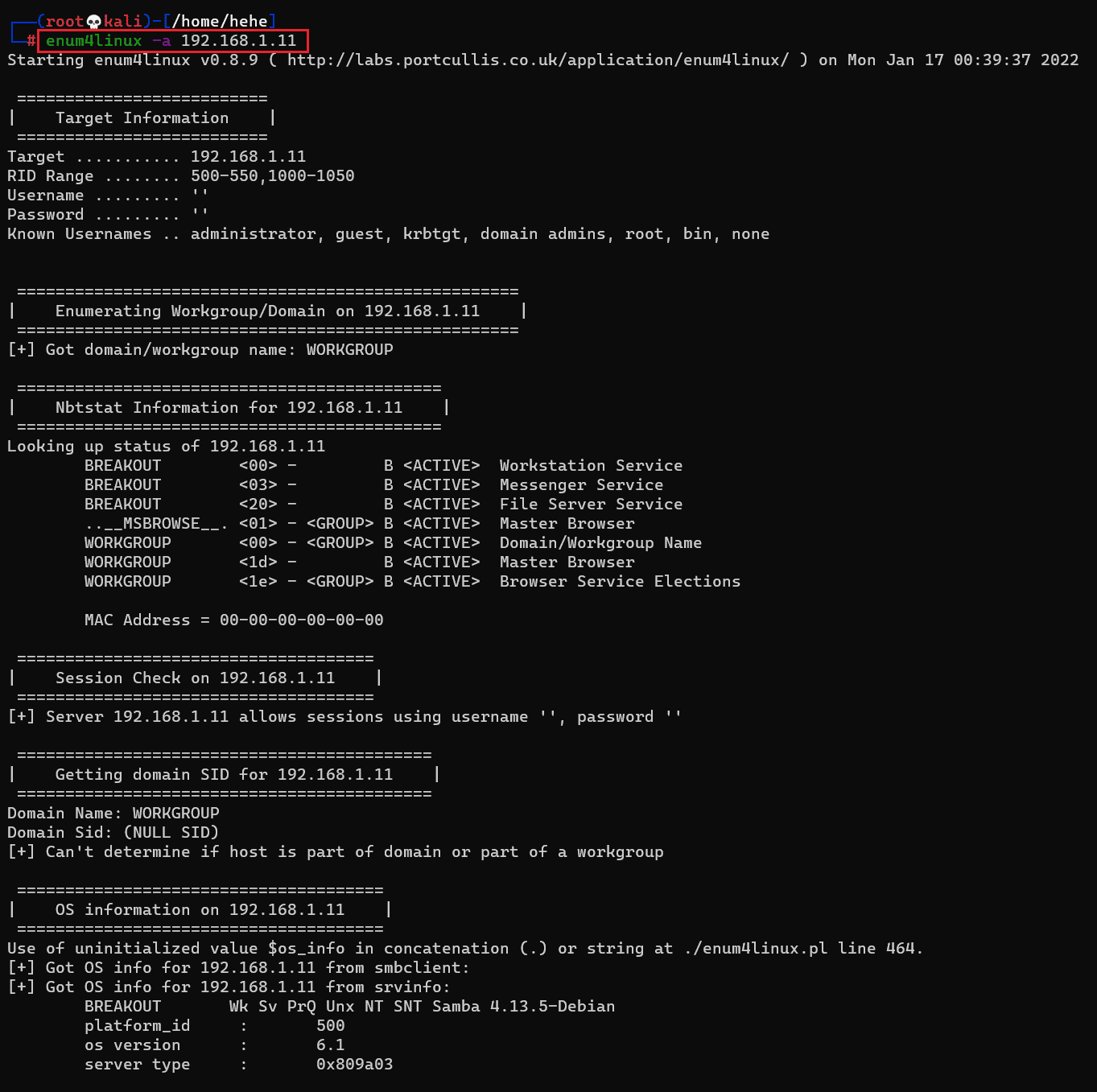 Command used: << nmap 192.168.1.11 -p- -sV >>