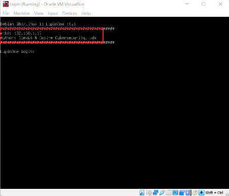 After running the downloaded virtual machine file in the virtual box, the machine will automatically be assigned an IP address from the network DHCP, and it will be visible on the login screen. The target machine's IP address can be seen in the following screenshot.