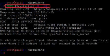 Command used: << nmap 192.168.1.15 -p- -sV >>