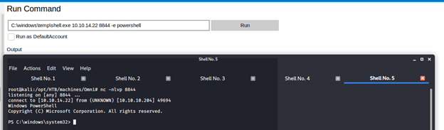 - Modify the execution this time to first upload the nc utility, and then execute it to spawn a reverse PowerShell.