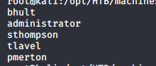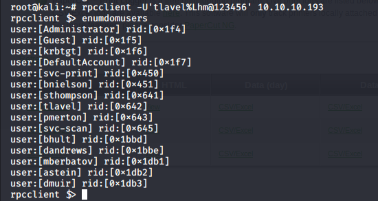 - After changing the password, we can do further enumeration using rpcclient, as shown below. We got a list of usernames.