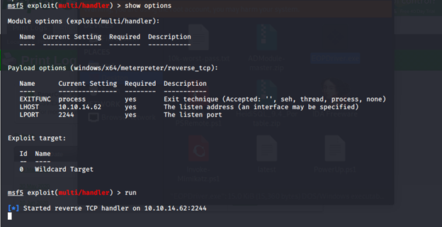 - Let’s start a listener for the msfvenom shell created above.