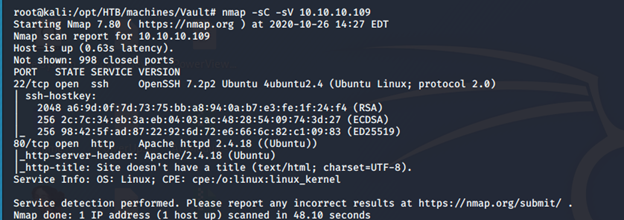 nmap -sC -sV -oA Vault 10.10.10.109