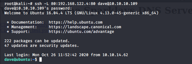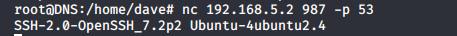 - From the DNS machine, we can run the SSH with the switch to run a proxy command by connecting to the machine as Dave.