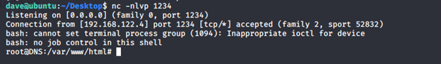 - Let’s open a listener on the Ubuntu box, as shown below. After execution of above, it throws a reverse shell back.