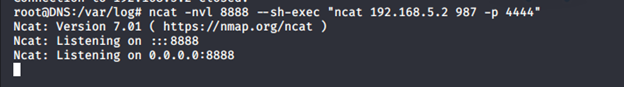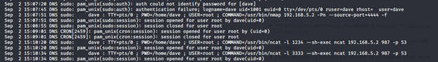 - Looking into the log events, it turns out that the it is listed how the Ncat command should run, i.e., with source port of 4444 and then trying to connect to port 53.