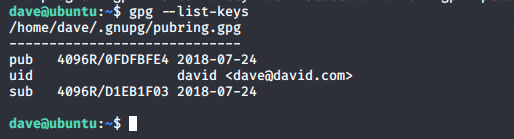 - Back in the Ubuntu machine, we have got some GPG keys.