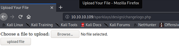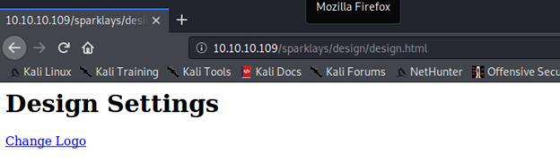 - Except design.html, we got access denied on all the pages. On design.html, we have a way to upload a logo and we can try to see if we can upload a reverse shell to it.
