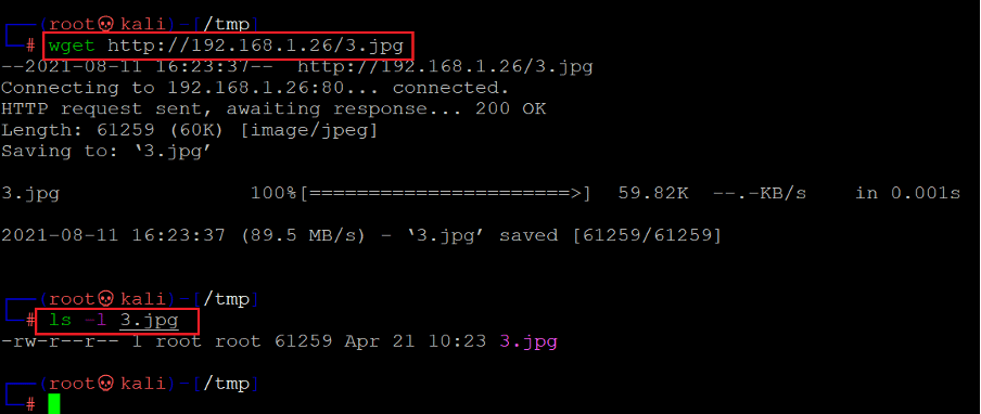 Command used: << wget http://192.168.1.26/3.jpg >>